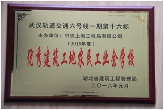公司武漢地鐵6號線16標項目部農民工業校榮獲