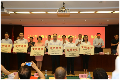 6月6日,2017年上海市合作交流系統(tǒng)精神文明建設(shè)大會在上海市市政大廈召開,會上,合作交流黨委向榮獲十八屆上海市文明單位榮譽稱號的單位頒發(fā)了獎牌、獎狀。作為獲獎單位,公司執(zhí)行董事、黨委書記尹朝援出席會議并代表公司接受了合作交流黨委的表彰。自公司重組、東遷上海以來,公司黨委主動與上海地方政府部門取得工作對接,積極融入上海市精神文明創(chuàng)建體系,經(jīng)過不懈努力,連續(xù)兩屆榮獲上海市合作交流系統(tǒng)文明單位榮譽稱號。在此基礎(chǔ)上,公司黨委繼續(xù)狠抓精神文明建設(shè),全面貫徹落實黨的十八大和黨的十八屆三中、四中、五中、六中全會精神,深入學(xué)習(xí)貫徹習(xí)近平總書記系列重要講話精神,以培育和踐行社會主義核心價值觀為根本,堅持圍繞中心、服務(wù)大局、立足實際、注重實效,深入開展群眾性精神文明創(chuàng)建活動,推動物質(zhì)文明和精神文明協(xié)調(diào)發(fā)展。在第十八屆(2015-2016年度)上海市文明單位創(chuàng)建期間,構(gòu)筑了完善的創(chuàng)建體系,形成了黨政工團齊抓共管的創(chuàng)建格局,努力打造建筑精品,積極履行社會責(zé)任,促進了企業(yè)全面協(xié)調(diào)可持續(xù)發(fā)展。