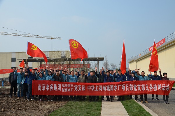3月22日,南京水務(wù)集團(tuán)機(jī)關(guān)第三、城南水廠黨支部聯(lián)合中鐵上海局南京夾江(城南水廠)取水口整合項(xiàng)目部黨支部開展義務(wù)植樹活動(dòng)。南京市城建集團(tuán)黨委委員、南京水務(wù)集團(tuán)黨委書記、董事長(zhǎng)單國(guó)平,副總經(jīng)理宋非,中鐵上海局市政公司副總經(jīng)理張杰,副總經(jīng)理何維義及部分黨員、職工等60多人參加此次活動(dòng)。