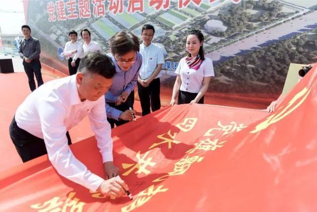 4月10日,黨員代表在黨建主題活動(dòng)旗上簽名